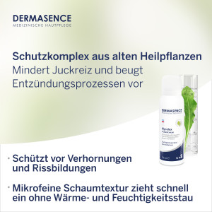 Verwöhnen Sie Ihre Füße mit dem DERMASENCE Mycolex Pflegeschaum, einem parfümfreien Pflegeschaum, der speziell für trockene und strapazierte Füße entwickelt wurde. Dieser Pflegeschaum enthält einen intensiven Feuchtigkeitskomplex aus 10 % Urea, 10 % Glycerin und Allantoin, der die Haut glättet und die Widerstandskraft sowie die Elastizität pilzempfindlicher und belasteter Füße erhöht. Ein Schutzkomplex aus alten Heilpflanzen mindert Juckreiz und beugt Entzündungsprozessen vor. Darüber hinaus schützt er die Haut vor übermäßigen Verhornungen und Rissbildungen und stärkt langfristig die Hautbarriere, um sie widerstandsfähiger zu machen. Der mikrofeine Schaumtextur verursacht keinen Wärme- und Feuchtigkeitsstau und zieht sofort ein, so dass keine Rutschgefahr besteht. Der DERMASENCE Mycolex Pflegeschaum ist dermatologisch getestet und parfümfrei.
